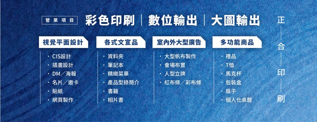 因預知印刷市場的改變,改以專精分工的整合模式,扭轉了傳統印刷的經營生態。以「 專業豐富的印刷知識 」及 「 靈活運用的網路科技 」 兩大利器掌握市場脈動,提供客戶新數位時代的全方位印刷服務。